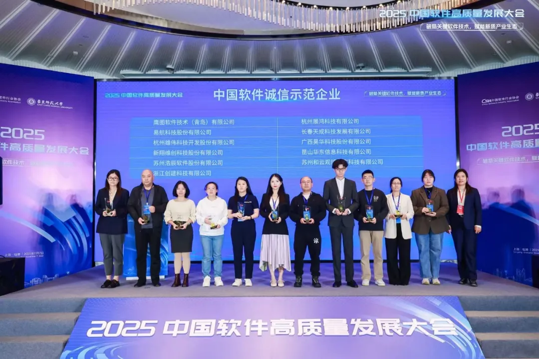 11月7日,新海航航空集团旗下易航科技在“2025中国软件高质量发展大会”上,凭借卓越的诚信表现与行业影响力荣膺“中国软件诚信示范企业”称号,成为软件行业诚信建设的标杆典范。